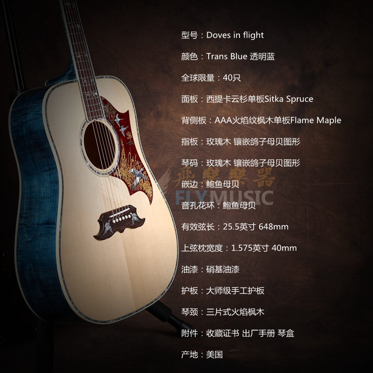 吉普森Gibson Doves In Flight Trans Blue 限量版民谣吉他