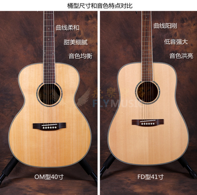 FD型:41寸 声音洪亮 低音澎湃 适合扫弦伴奏等 适合身高174以上的朋友